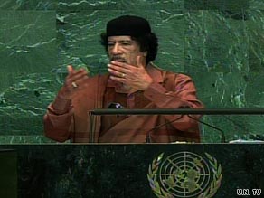 On Wednesday, Libyan leader Moammar Gadhafi spoke before the U.N. General Assembly for the first time in his 40-year rule — apparently making up for lost time with a nearly 100-minute speech, which dramatically exceeded the allotted 15 minutes.